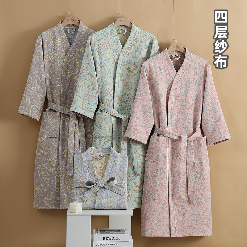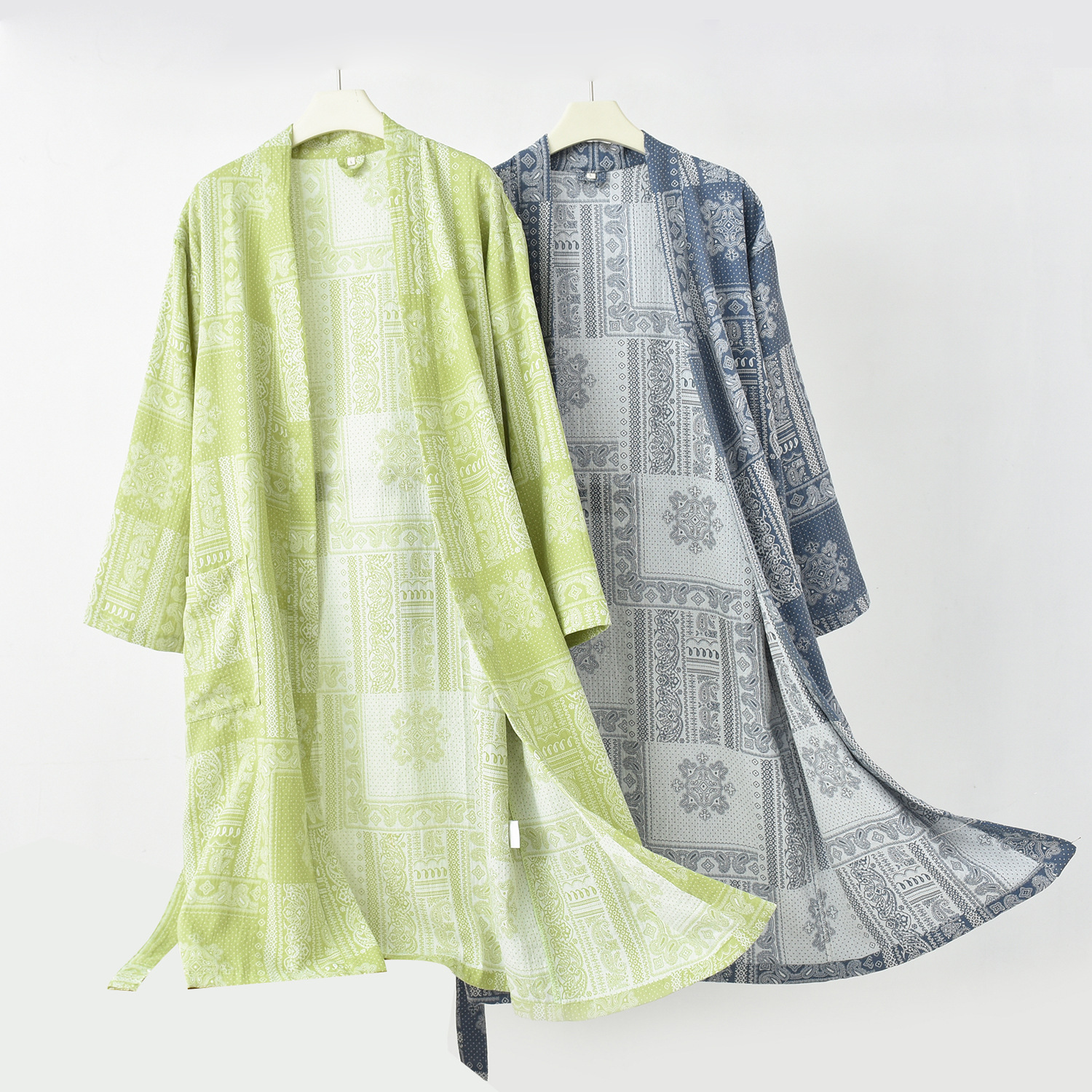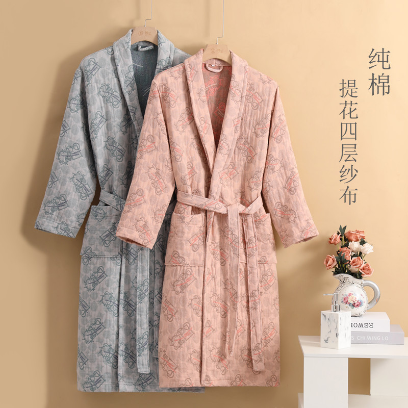 25春夏新作純綿ガーゼジャカードバスローブ2層浴衣パジャマホームウェアパジャマゆったりレトロカップル