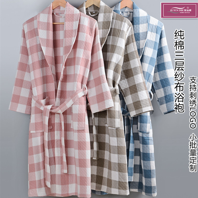日本式のバスローブ純綿三層ガーゼ浴衣家ホテルのカップルの寝衣男女パジャマが吸水して毛が落ちない