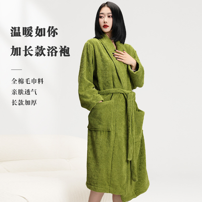 クロスボーダー秋冬厚手純綿六層糸バスローブ長型浴衣民宿ホテルカップル純綿寝衣卸売り