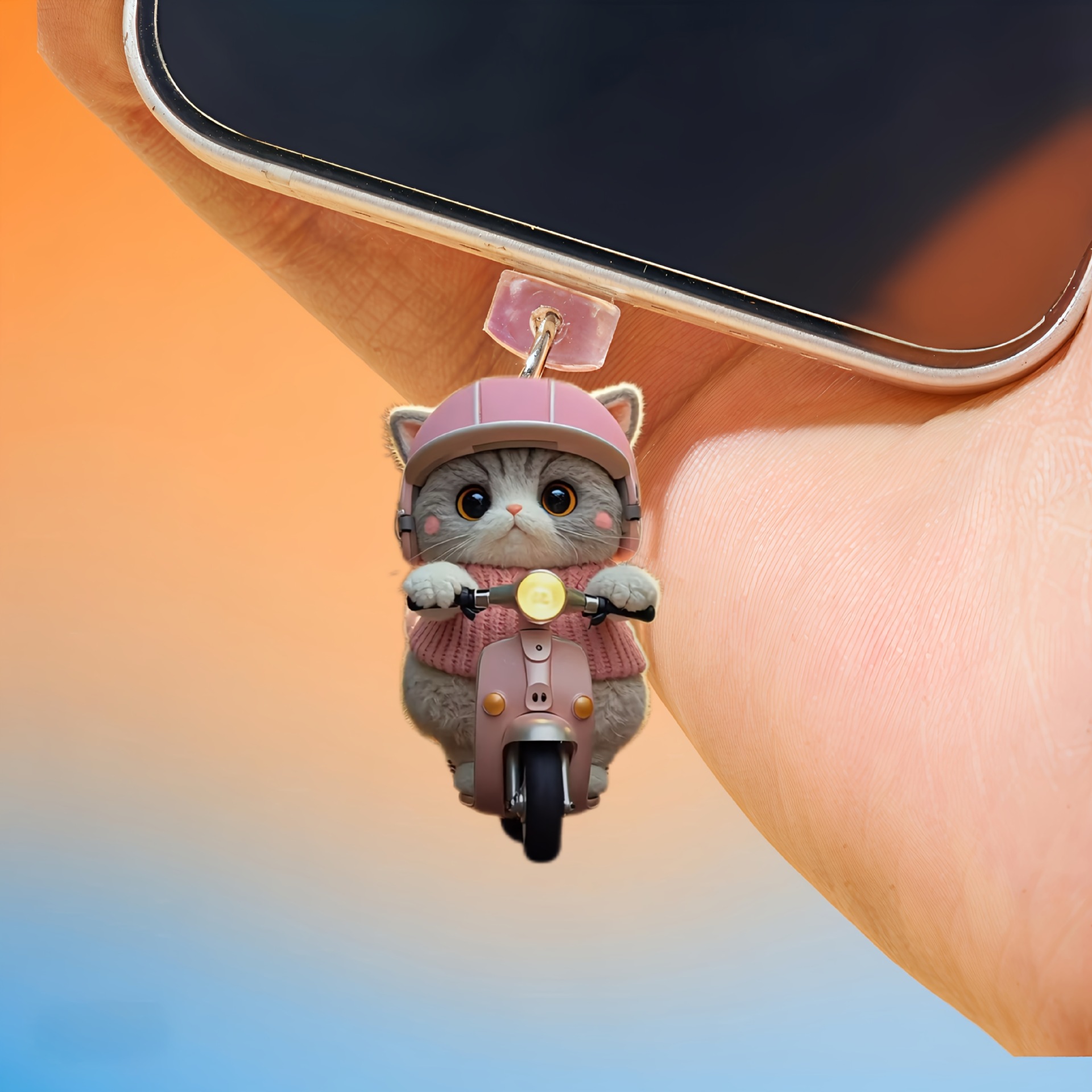 アクリル 2D 乗馬子猫テーマ携帯電話ダストプラグ楕円形インターフェースポート装飾ペンダント