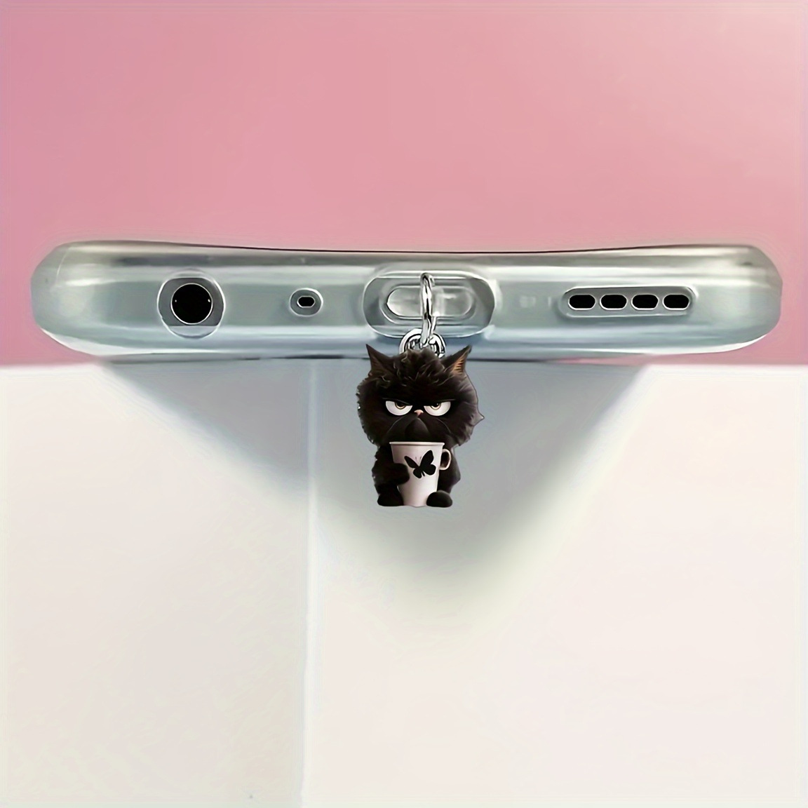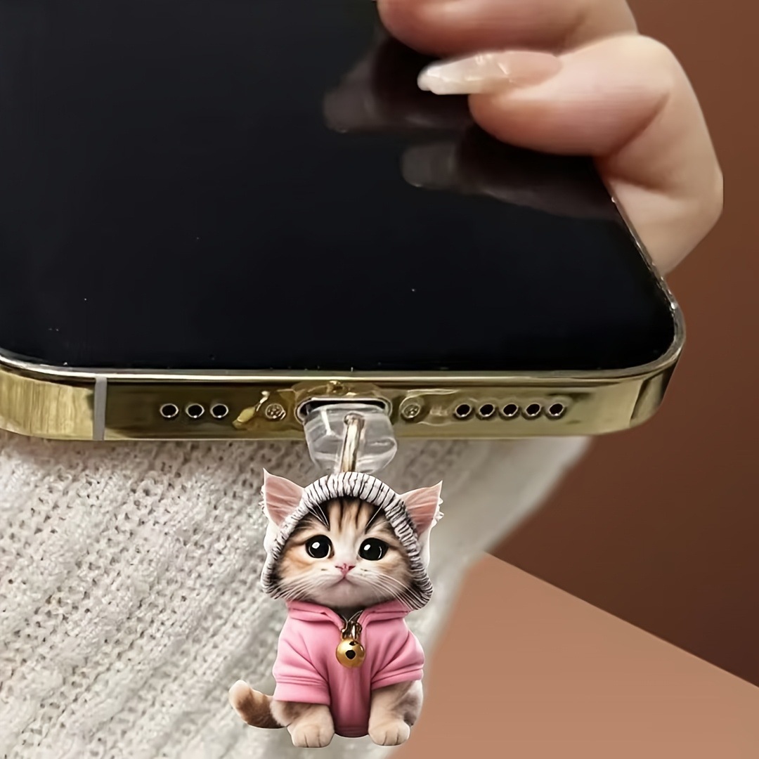 ピンクのスウェットシャツの斑点のある猫 2D アクリル電話ダストプラグ、Type-C と互換性あり