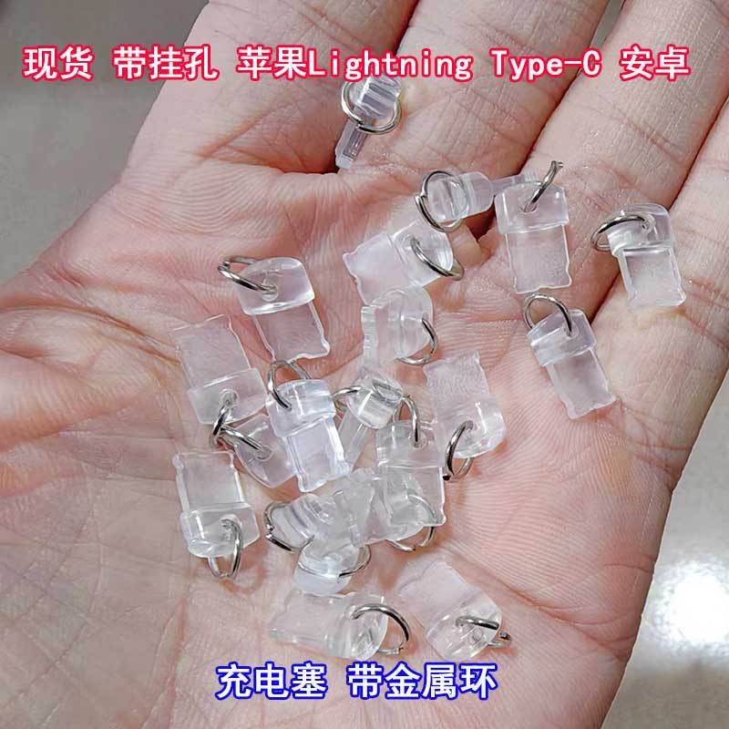 現物に金属リングがついています。アップルのlightning充電口の防塵プラグtype-cの穴付きdiyアンドロイドが詰まっています。