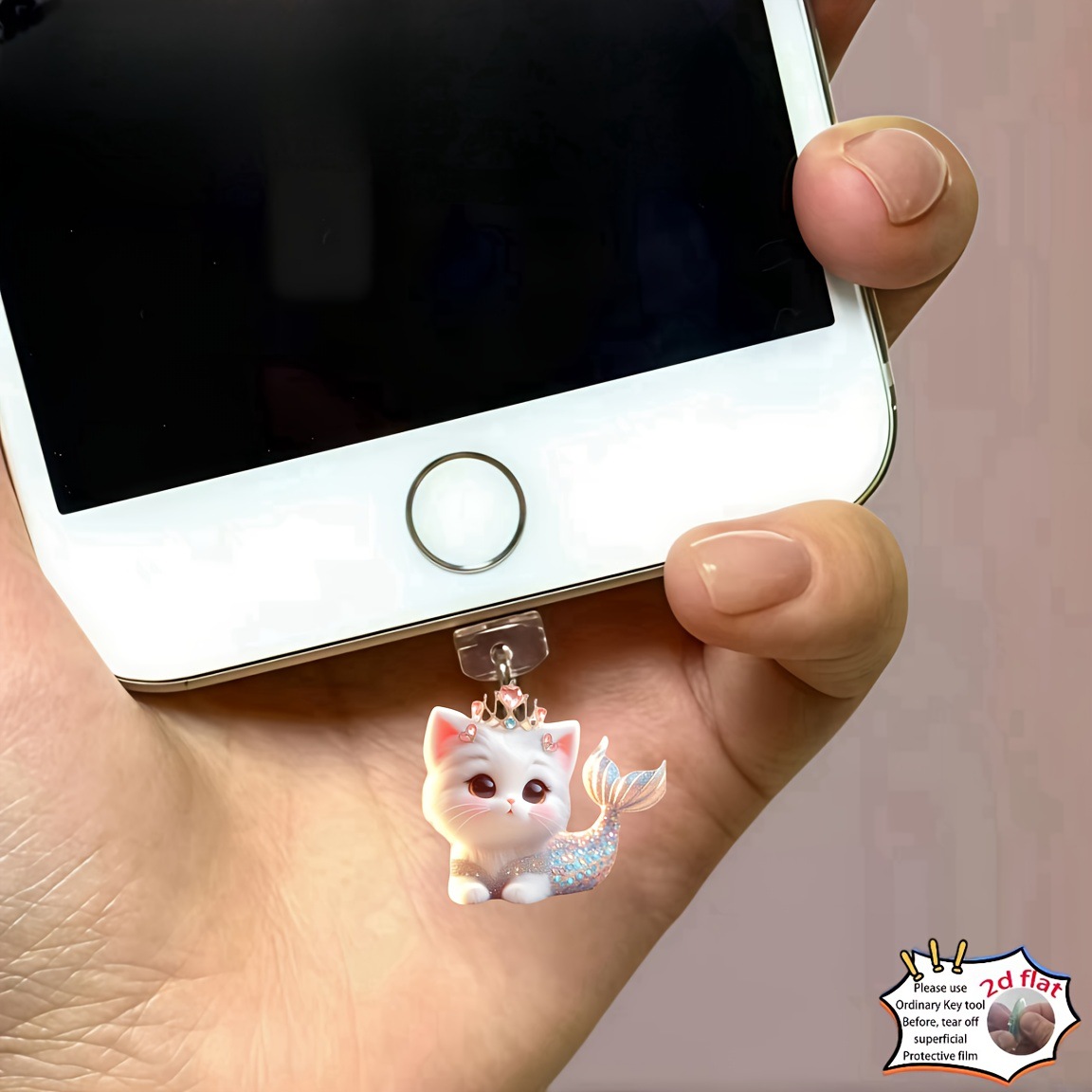 国境を越えた人気の2Dアクリル猫マーメイドテーマの携帯電話ダストプラグ、iPhoneType-Cに適しています