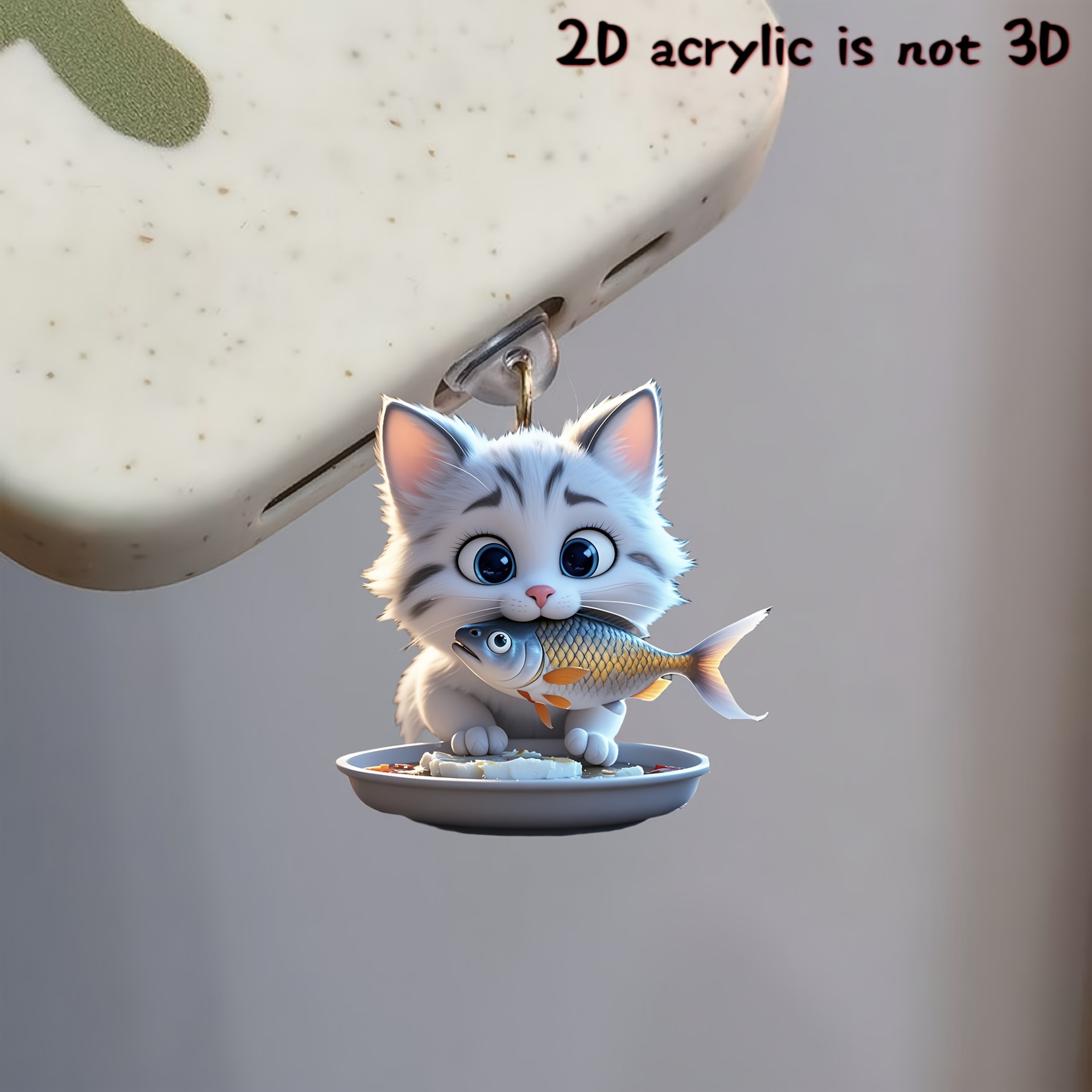 2D 面白い魚を食べる猫クロスボーダーホットスタイルアクリル携帯電話防塵プラグペンダント Type-C