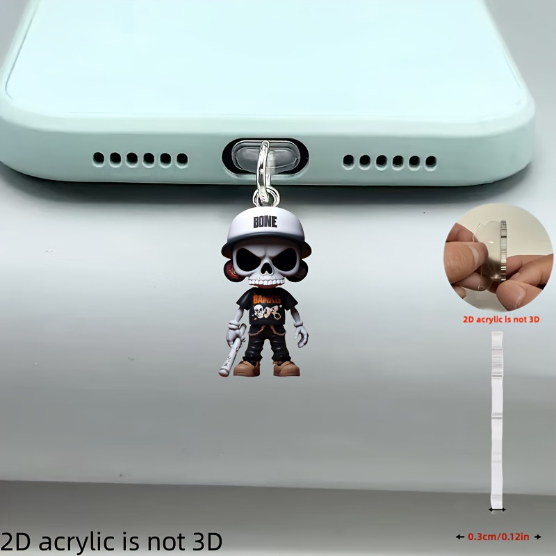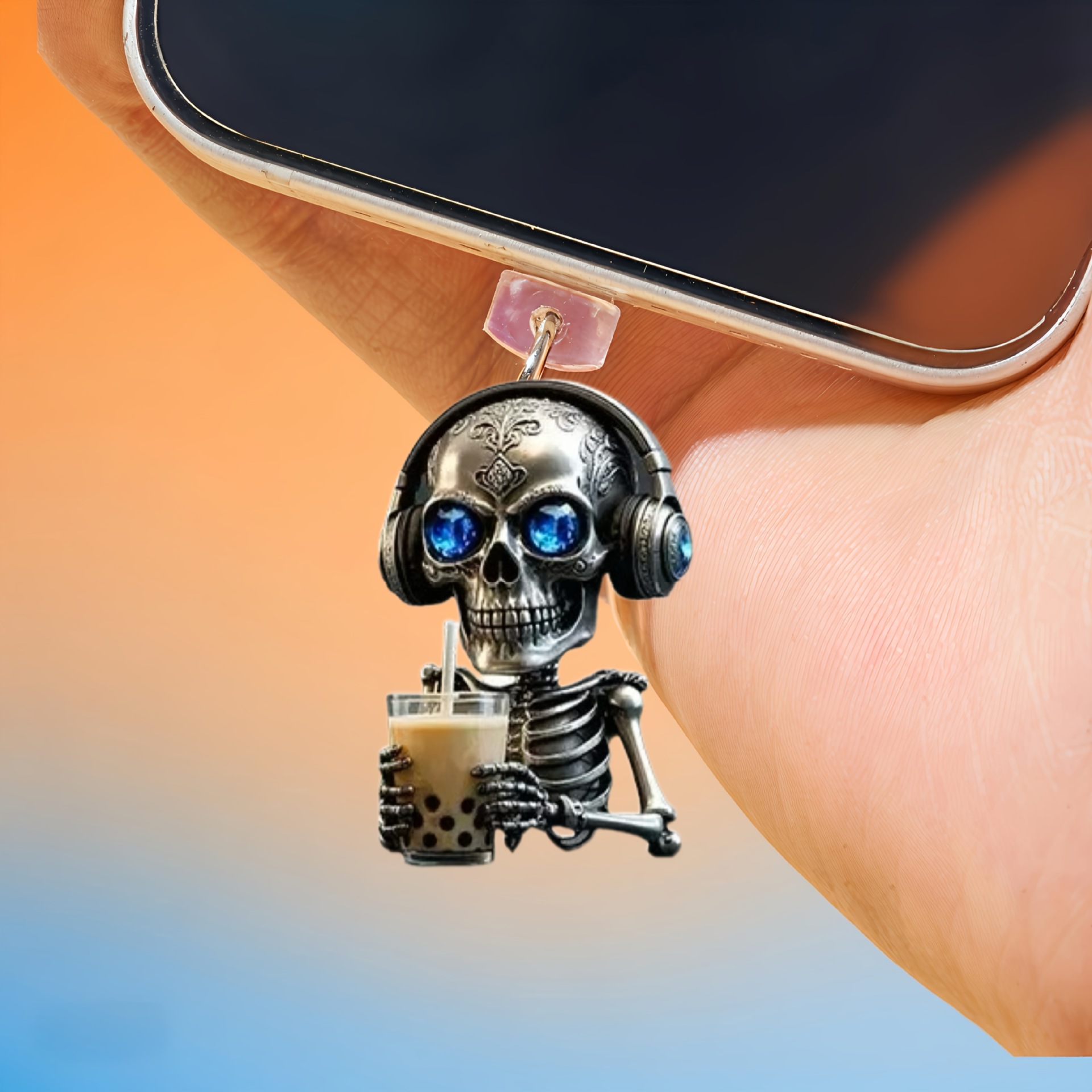 クールなスカルをテーマにした携帯電話用ダストプラグ: iPhone/Type-C Android コネクタに適しています。