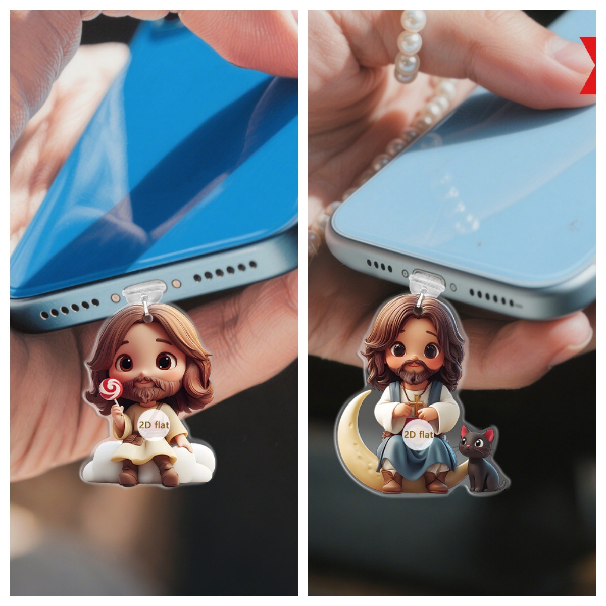 2D アクリル太極拳猫テーマ携帯電話防塵プラグ iPhone Type-C インターフェイス装飾ペンダント