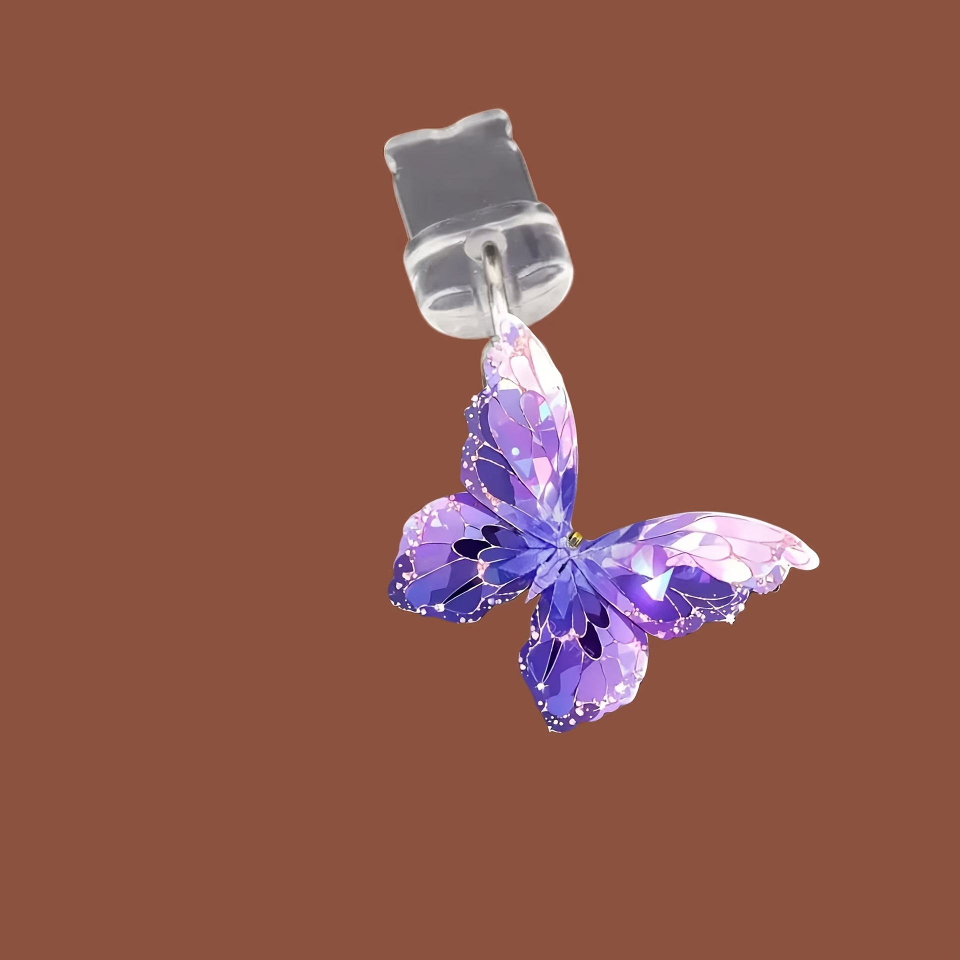 アクリルクリスタルバタフライダストプラグ、Type-C Android コネクタと互換性あり、携帯電話プロテクター