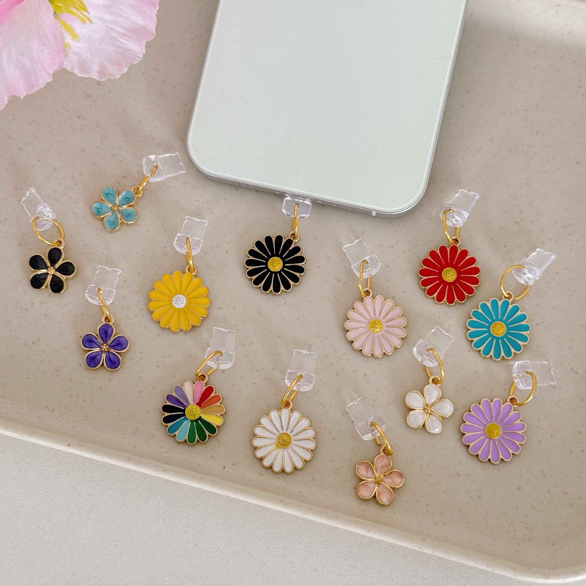 韓国版の清新な小さい菊の花の携帯電話の充電口の防塵プラグのペンダントはリンゴのファーウェイのandroidのインターフェースに適用します。