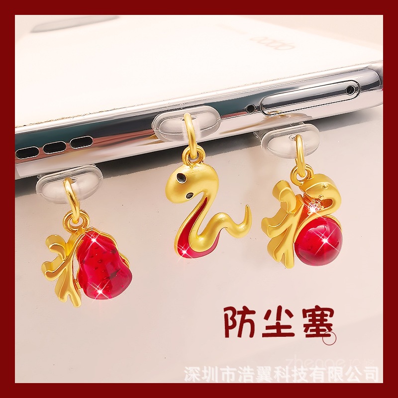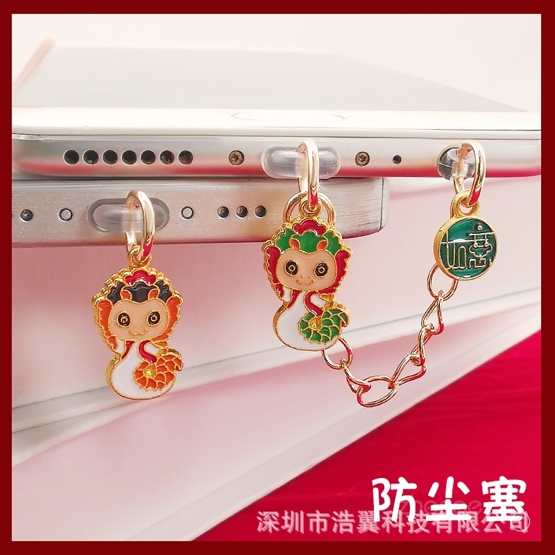 新年蛇ペンダント携帯電話防塵プラグinsかわいいアニメペンダント男女携帯ケース小吊り紐海外起爆金