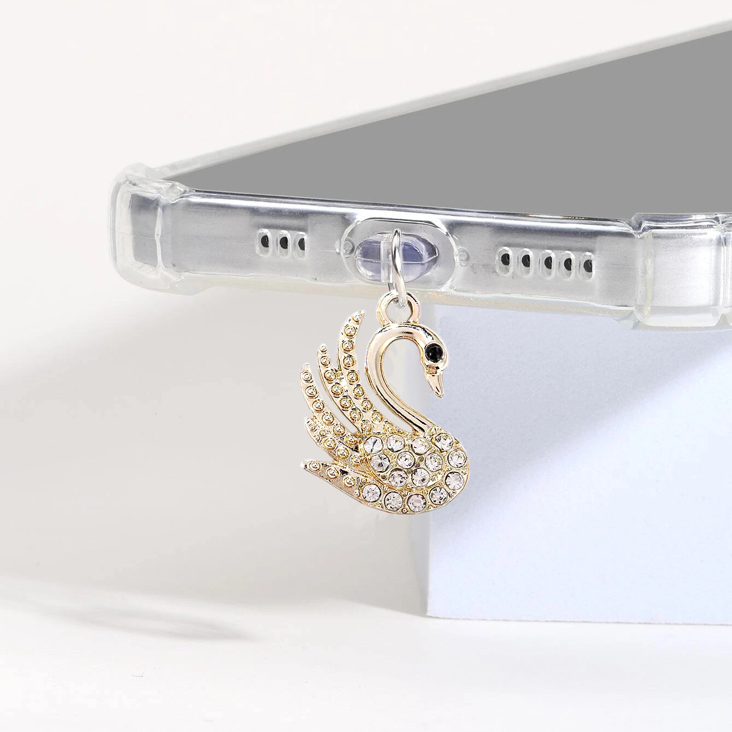 国境を越えた新製品はシンプルで、白鳥の美しいペンダント合金部品diyストラップ携帯電話の防塵プラグ装飾品を入れている