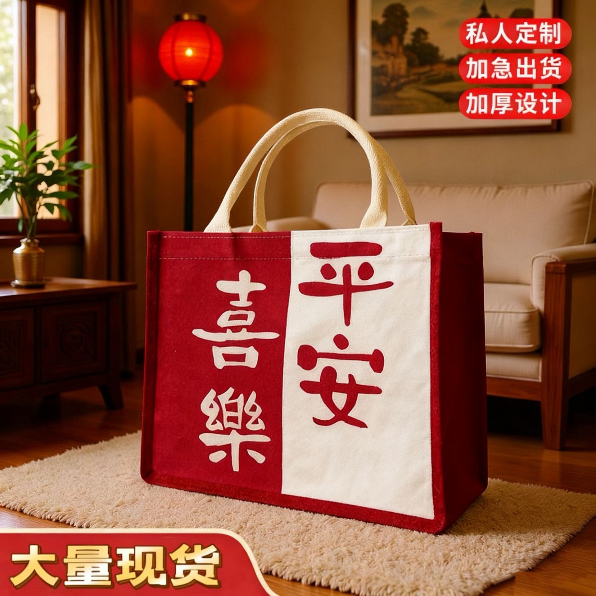 平安喜楽キャンバスバッグ歓慶喜字キャンバストートバッグ結婚祝い専用高級喜糖ギフトバッグ卸売り