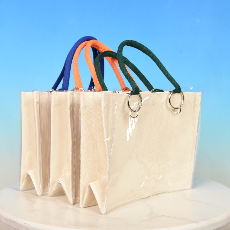 取り外し可能なキャンバストートバッグ DIY 防水透明二層スナップボタン二次元防汚肩痛バッグ