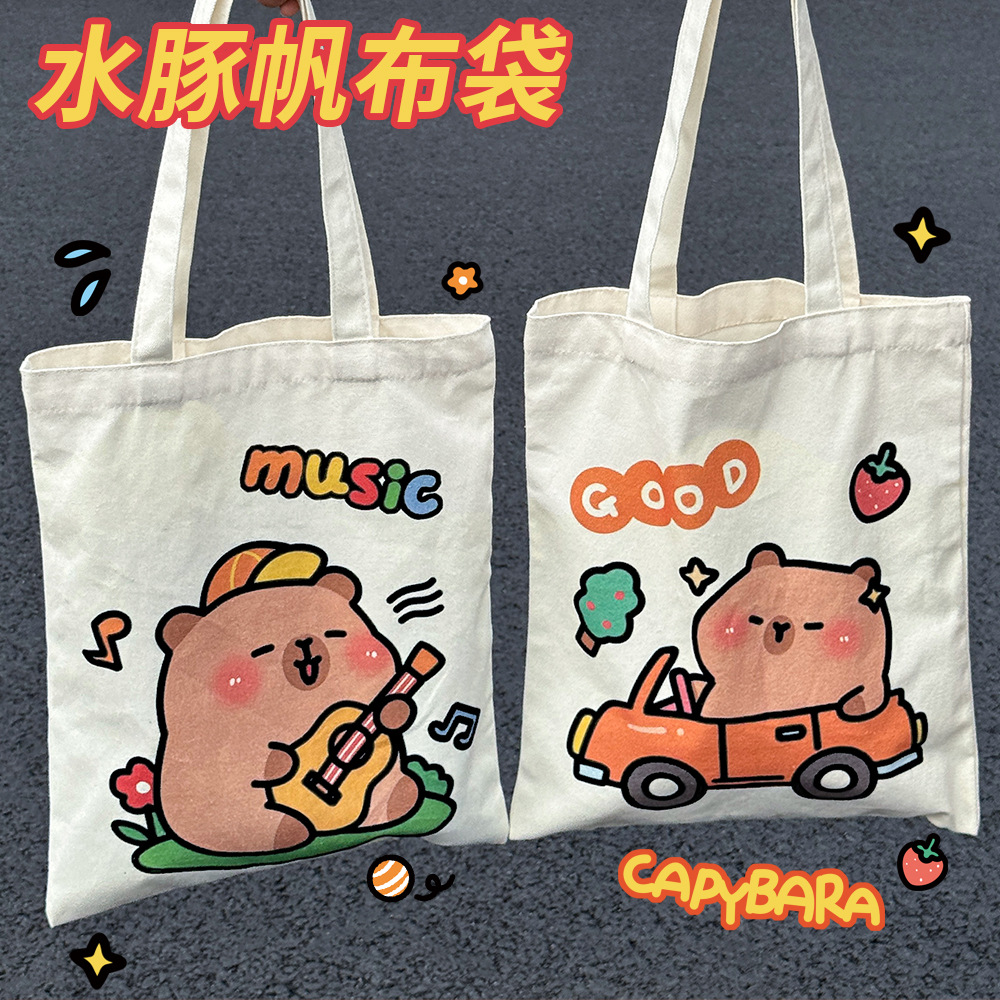 カピバラキャンバスバッグ学生ショルダーイン多用途シンプルな文学ハンドバッグ漫画カピバラキャンバスバッグ