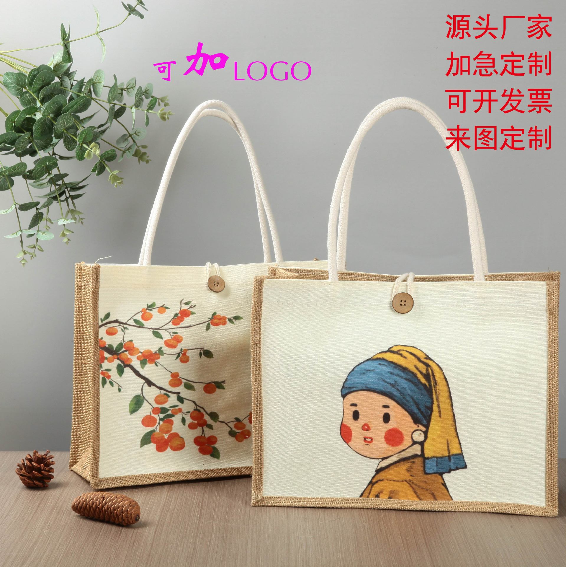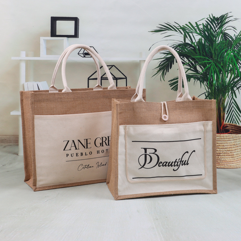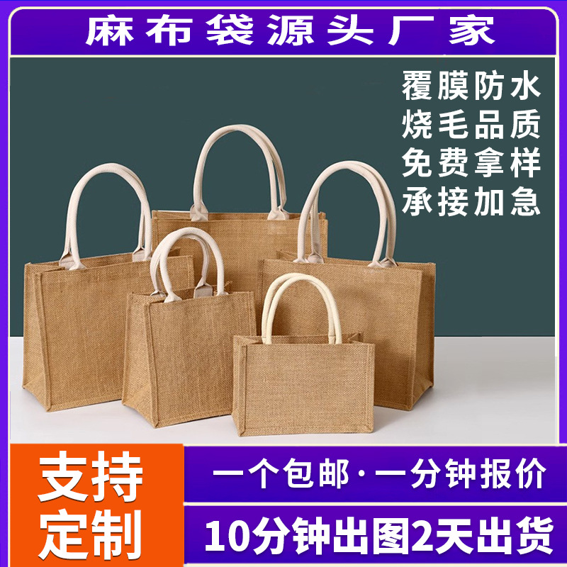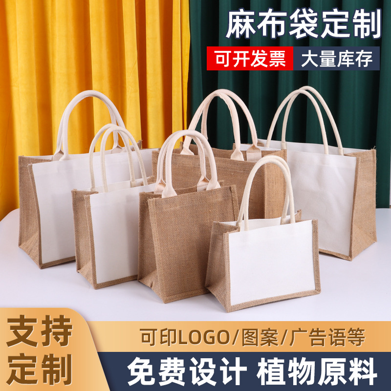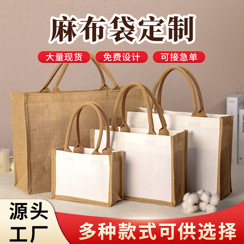 麻袋カスタムロゴ環境保護袋カスタム黄麻レジ袋大容量手提げ袋diyトートバッグ印字