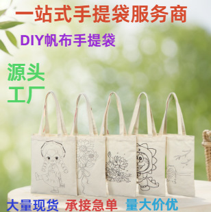 在庫ありの落書きキャンバスバッグ、子供向けクリエイティブ漫画DIYコットン製ハンドバッグ、ロゴ印刷・カスタム可能