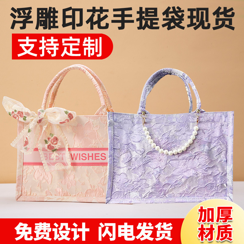 ギフトバッグ現物加印ロゴ高級感38婦人デープレゼント袋厚手立体手提げキャンバストートバッグ