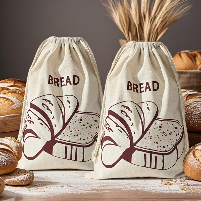 メーカー卸売リネンパン保存袋キャンバスバッグフレンチバゲットリネンバッグ、ロゴ入り手作り可能