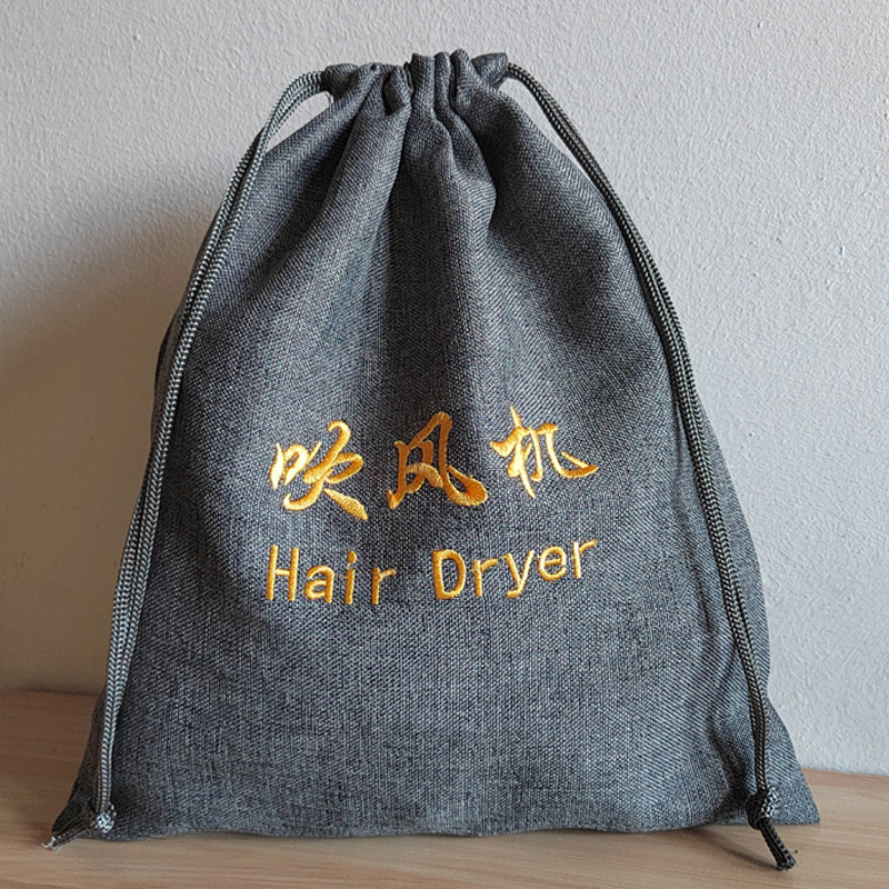 現物の灰色の麻布のドライヤーは袋の刺繍の字のドライヤーを収納します。