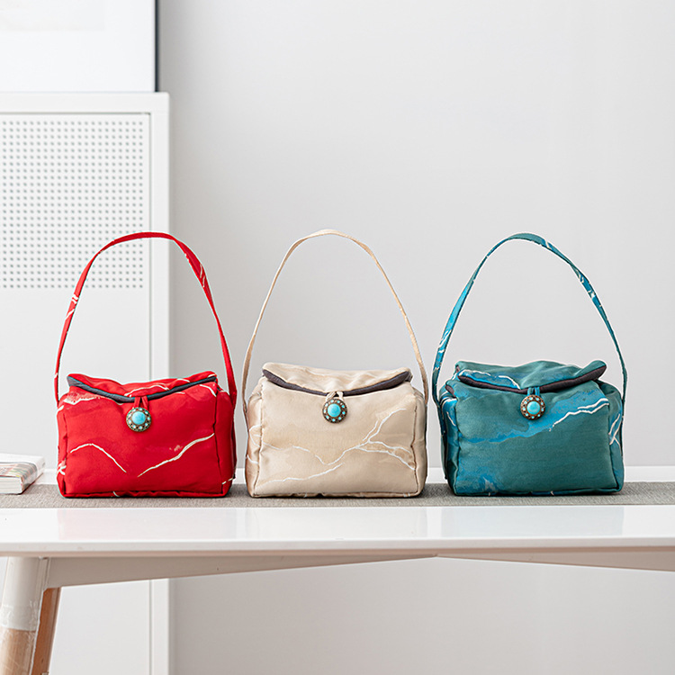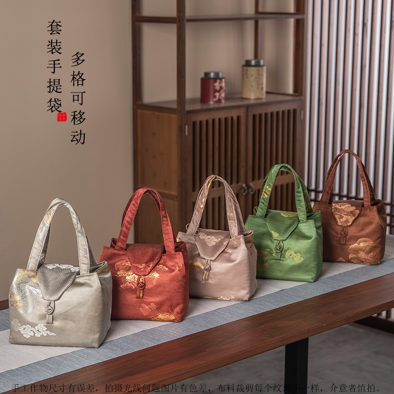 織錦織茶道具セット収納袋厚手車載携帯ティーポットカップ雲松手提げ布バッグプラスロゴ製
