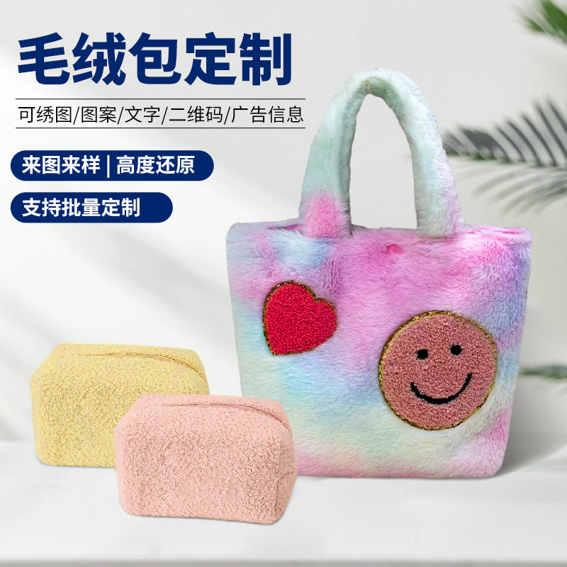 イミテーションラビットぬいぐるみバッグ、クロスボディぬいぐるみバッグ、テディベルベットシェニール刺繍レターステッカー化粧品バッグ、ウォッシュクラッチバッグ
