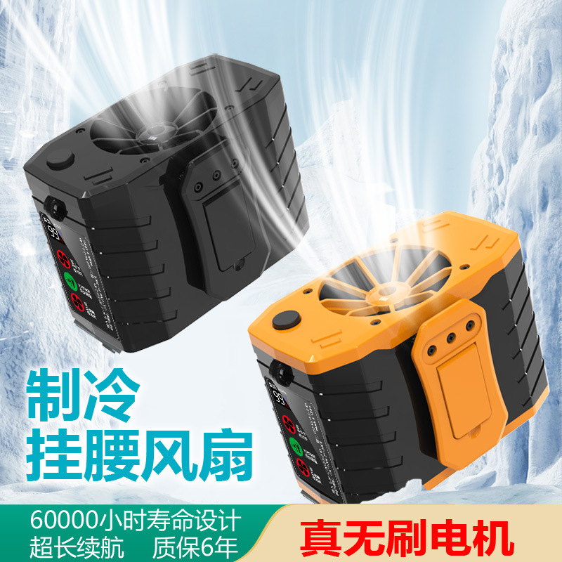 二重空調機能付き腰掛け冷却ファン、携帯型腰掛け・首掛け冷却ファン、高温対応、屋内外、工事現場、ポータブル冷却