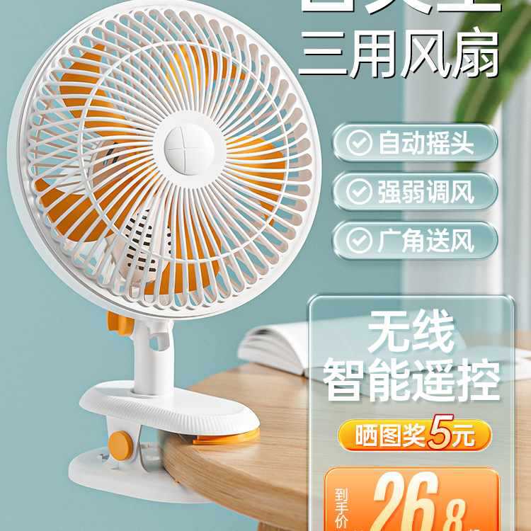 USB小型ファンミニ小型充電クリップファン学生寮デスクトップ扇風機充電プラグイン二重扇風機