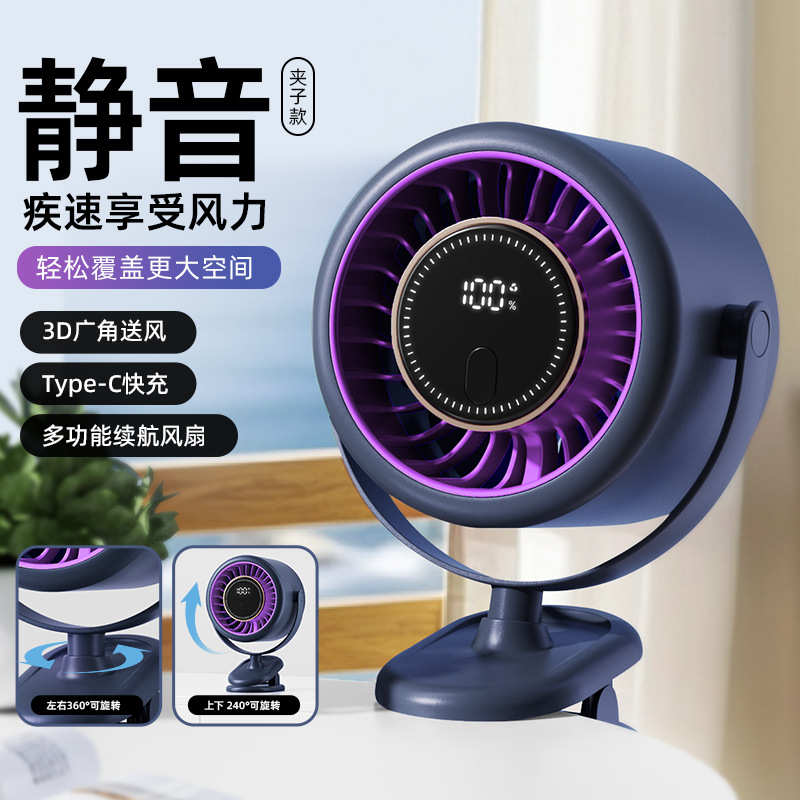 クロスボーダーデジタル表示オフィスデスクトップクリップファン屋外携帯静音大風力タービン循環ファン小ファン