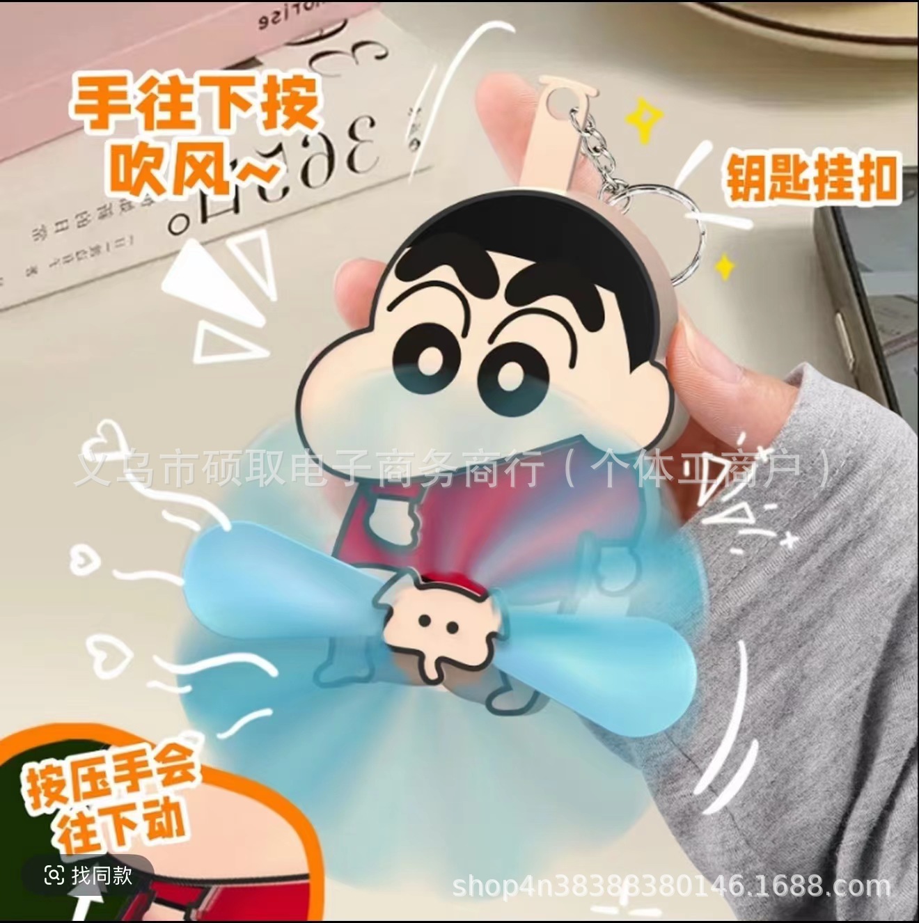 クレヨンしんちゃん 象 プレスファン 面白い学生 ポータブルファン キーホルダー ペンダント 楽しい手回しファン