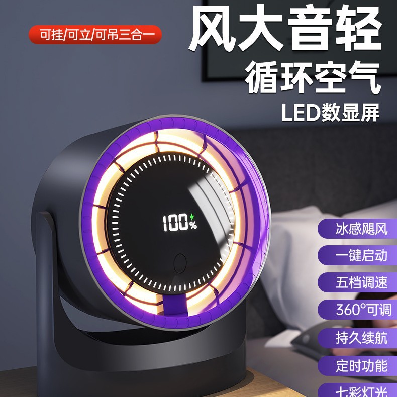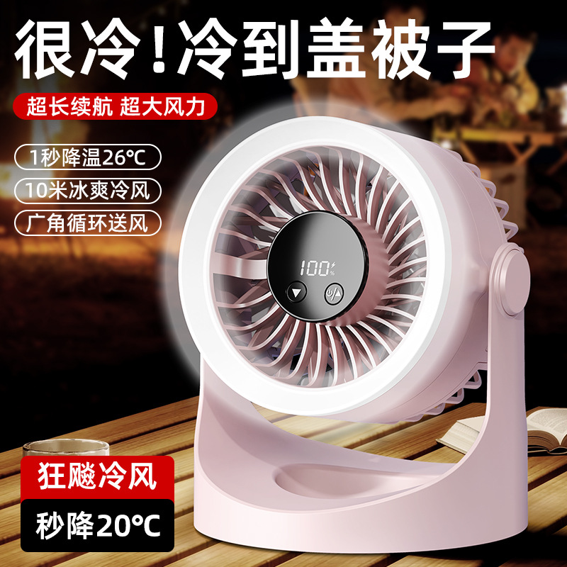 国境を越えたデスクトップ100段循環ファン家庭用小型オフィス充電壁携帯寮ランプ付き扇風機