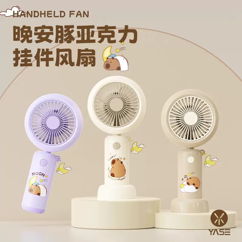 【在庫あり】トリックオアトリートファン かわいい漫画 カピバラ 引き手回し扇風機 キーホルダー 面白いおもちゃ