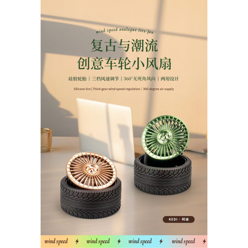 トレンディなデスクトップタイヤファン 3 スピード風力 USB 充電折りたたみレトロホイールファンデスクトップ装飾品