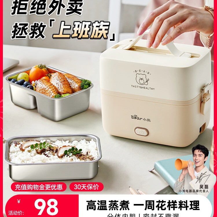 リトルベア電気弁当箱小型ポータブルプラグイン加熱温かい食事二重層断熱ポータブル自己加熱弁当箱