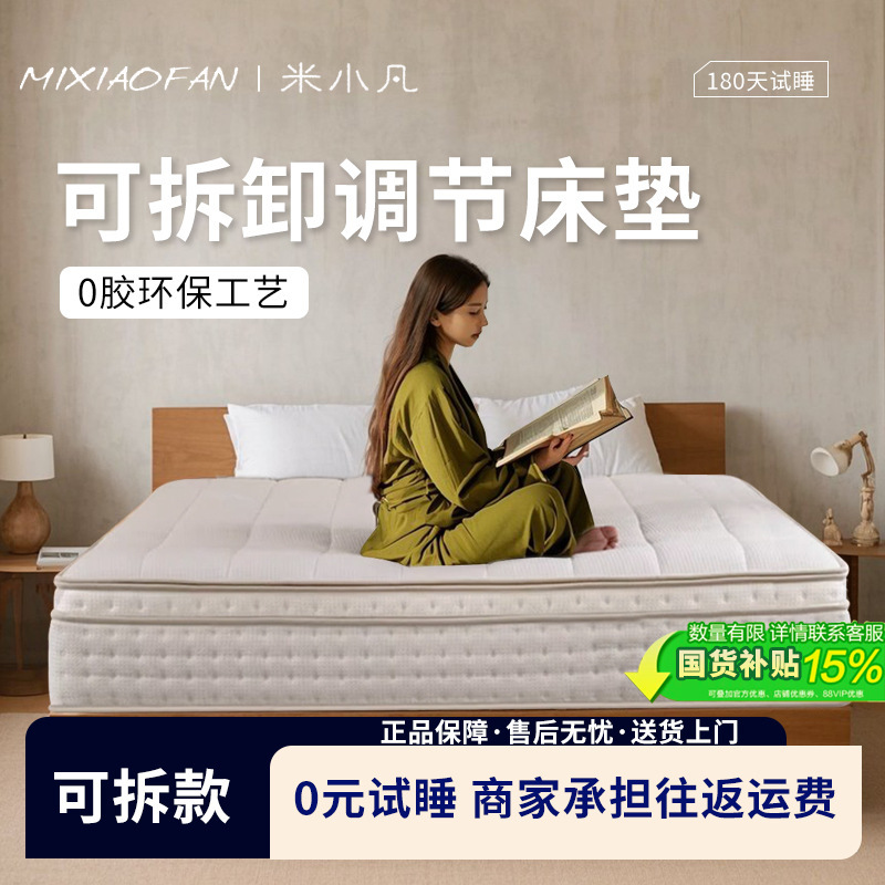 取り外し可能な水洗い0接着剤家庭用調整硬質適度なクール布独立スプリング席夢思分体式マットレス