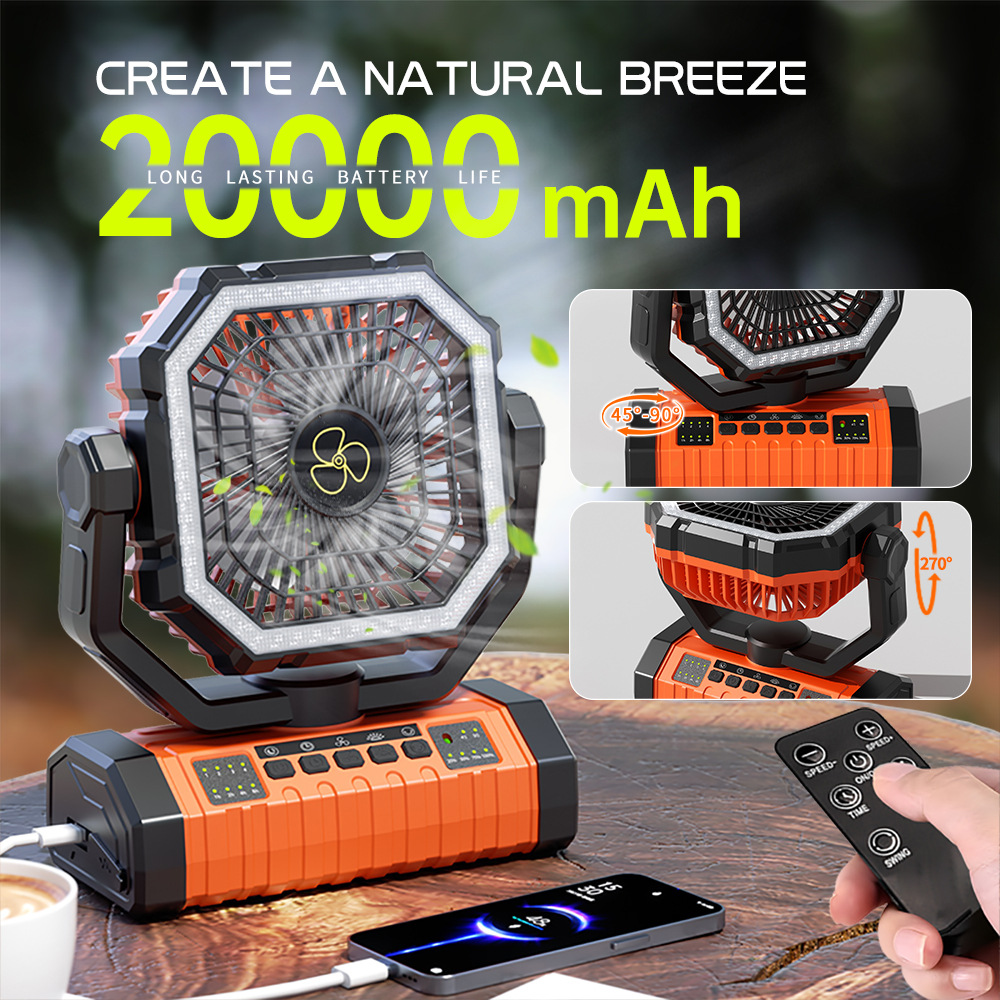 新型キャンプファン屋外照明充電式首振りファンポータブル強風リモコンファン照明