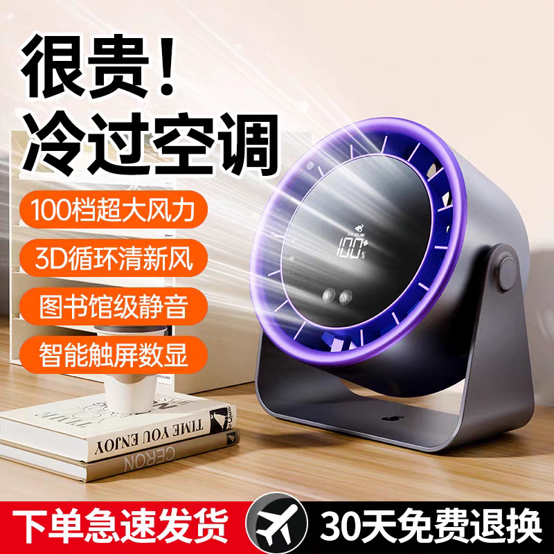2025新型デスクトップファン100レンジ高速循環ファン充電デジタル表示デスクトップターボ壁掛けデスクトップファン