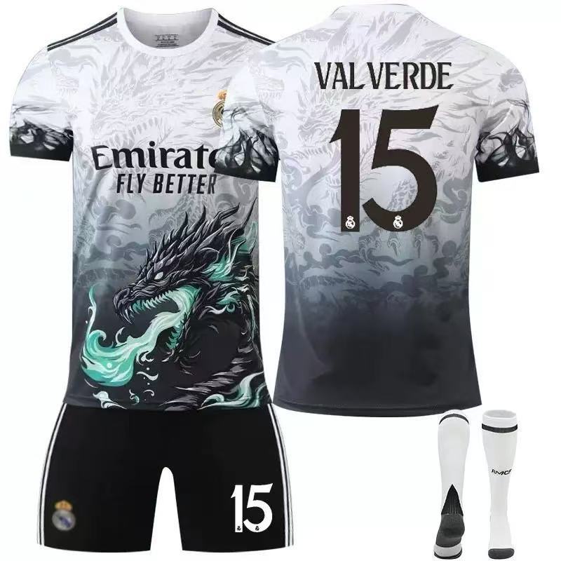 2425 レアルマドリード ドラゴン柄ジャージ ホットプリントスーツ 5 ベリンガム 9 ムバッペ 子供用サッカーユニフォーム クロスボーダー