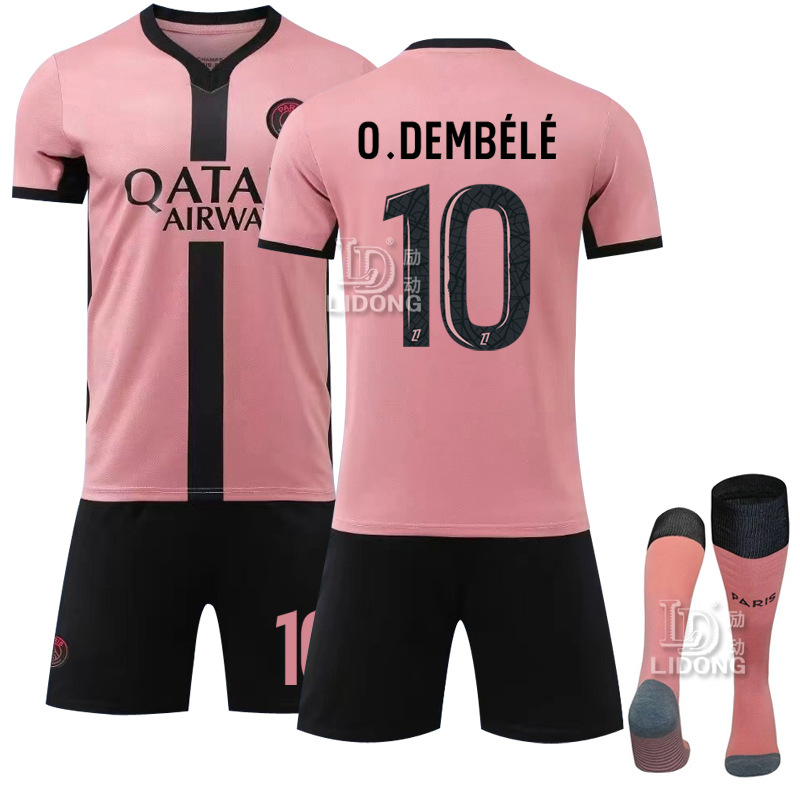 2425パリ二アウェイピンクユニフォームスーツ10番デンベレ7ムバッペ30メッシサッカースポーツウェア
