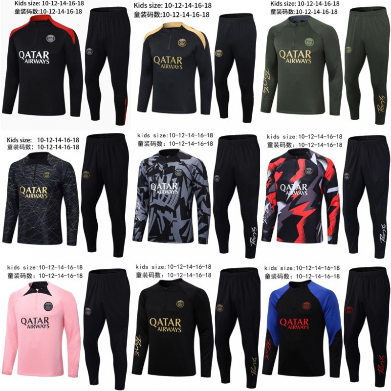 卸売子供用ハーフプルサッカートレーニングスーツパリ・インターチェルシーアーセナルリバプールバルセロナ長袖スーツ