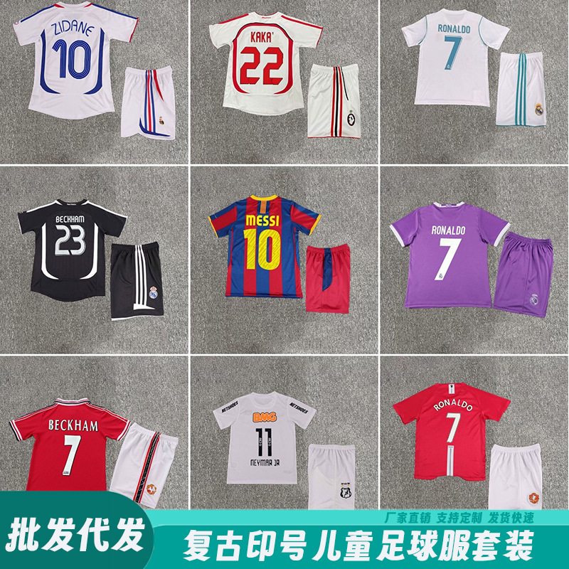 レトロジャージサッカーユニフォーム子供スーツ代表チームユニフォームメッシCロナウドジダンネイマールサッカーユニフォーム