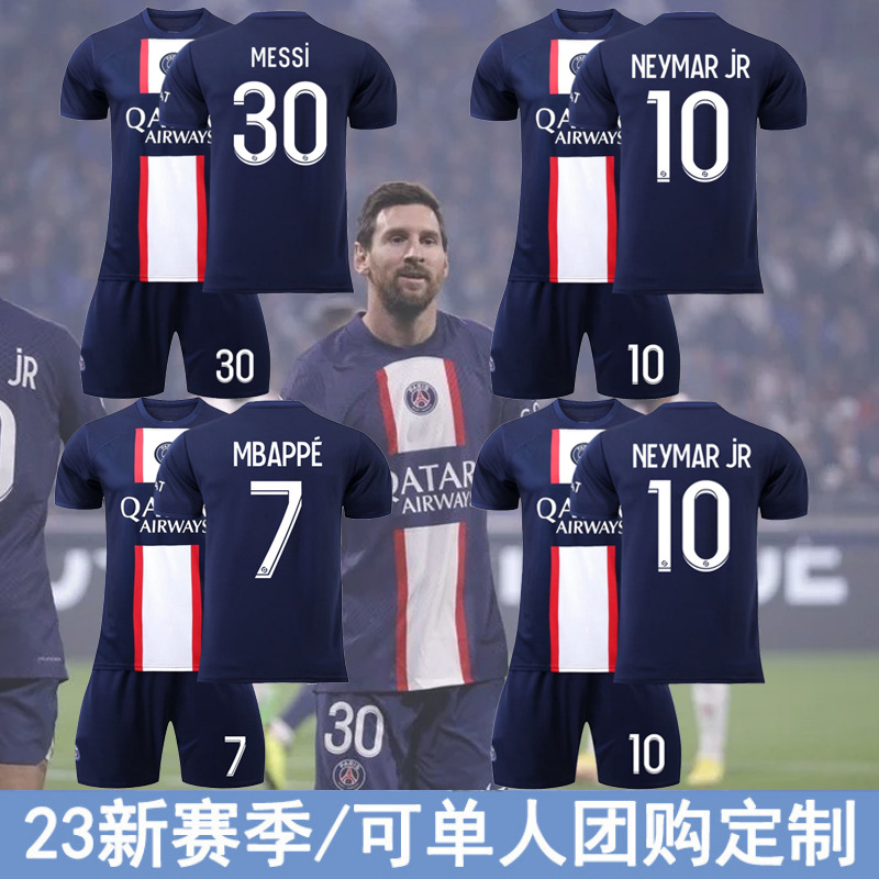 23パリホーム白青条メッシ30号ムバペ7号ユニフォームサッカー服セット子供成人