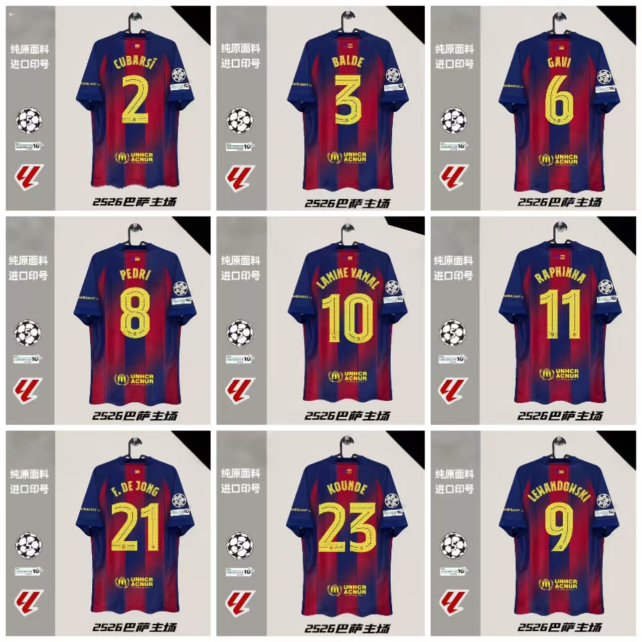 25-26 バルセロナ レアル マドリード ホーム チャンピオンズ リーグ No.10 アマール No.11 ラフィナ No.8 ペドリ ジャージ