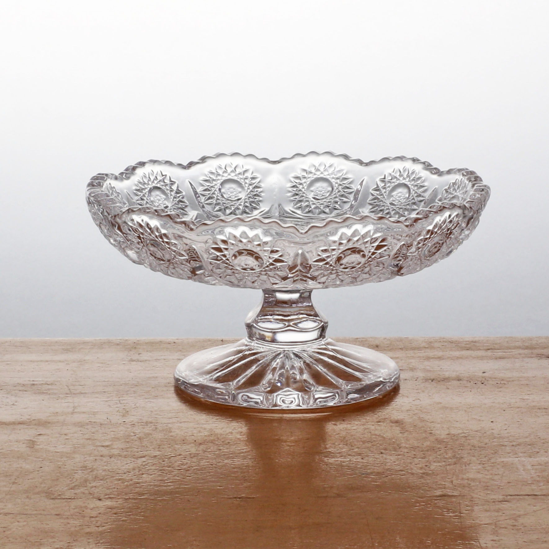 軽くて豪華なレリーフガラスの果物皿のお菓子皿のアイデアのお茶のいくつかの高い足の水晶の果物皿の客間の家庭用の瓜の皿