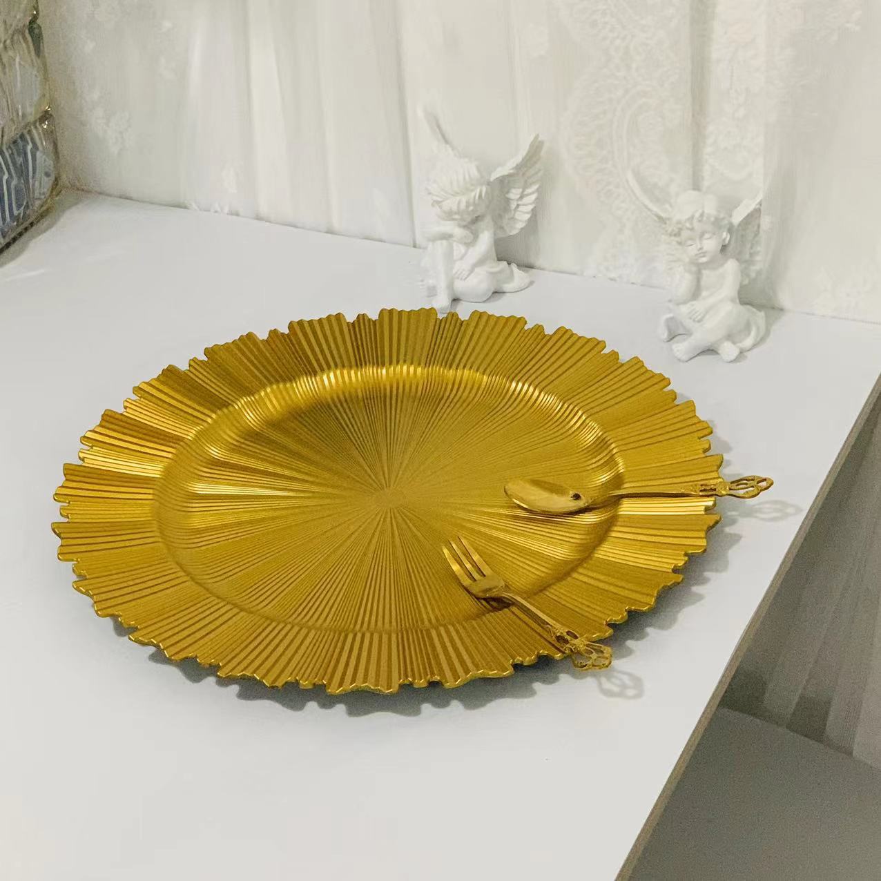 ヨーロッパ風模造陶磁器結婚式ホテルパーティー箔押し縁工芸装飾プラスチック果盤黄金キラキラ高級スタイル