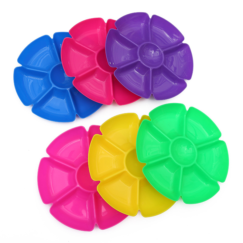 プラスチック製フルーツプレート、丸型、家庭用、食品グレード、リビングルーム、コーヒーテーブル用、仕切り付き、スナック、ナッツ、ドライフルーツ、フルーツトレイ、卸売