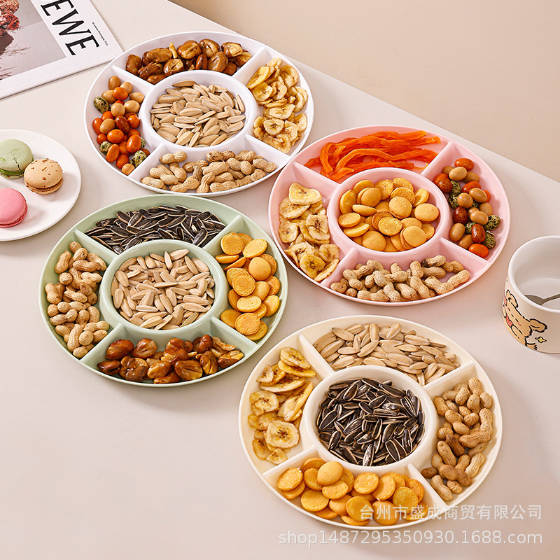 プラスチック分格小食盤食品級円形五分格瓜子ナッツスナック盤卸売り年産ドライフルーツ皿