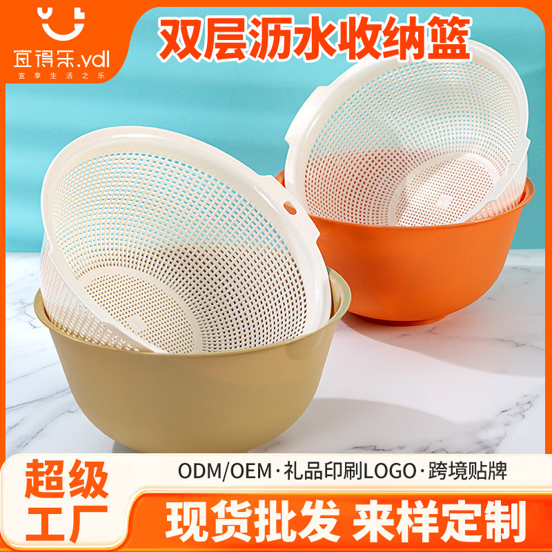 二層式シンプルプラスチック製品キッチンレストランホテル排水バスケットフルーツトレイ中華風米洗い機排水バスケット