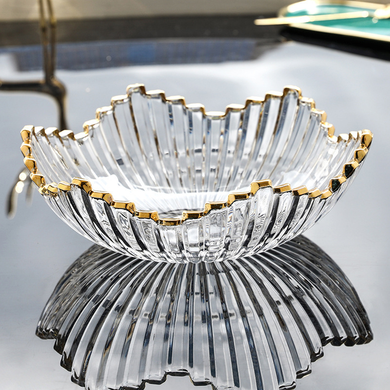 シンプルで軽い高級クリスタルガラスホームリビングルームフルーツプレートフルーツバケツコーヒーテーブルヨーロッパインターネットセレブモデル大型フルーツボウルナッツ