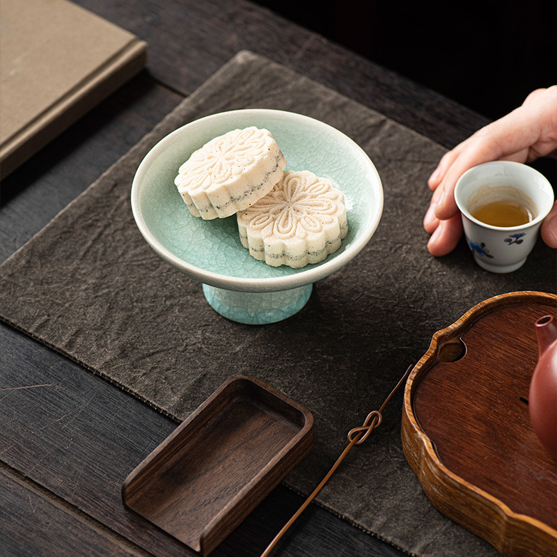 お茶皿中国式陶磁器高足禅意果皿スナックナッツ皿トレー午後のお茶菓子皿茶卓