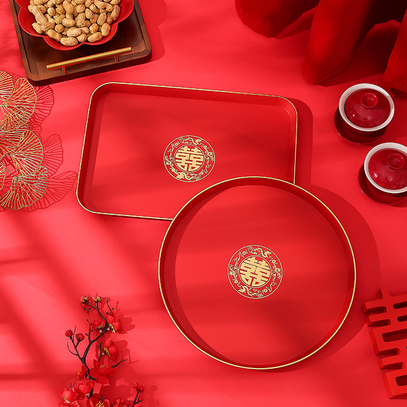 結婚果物皿喜糖盤客間赤おめでたい乾杯トレー結婚式用の喜皿ウェディング用品大全