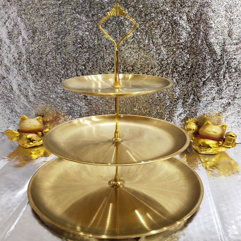 軽い贅沢なデザート台の置物の間食の展示棚の多層のケーキの棚の丸いお菓子の果物のキャンディーの皿の客間の家庭用